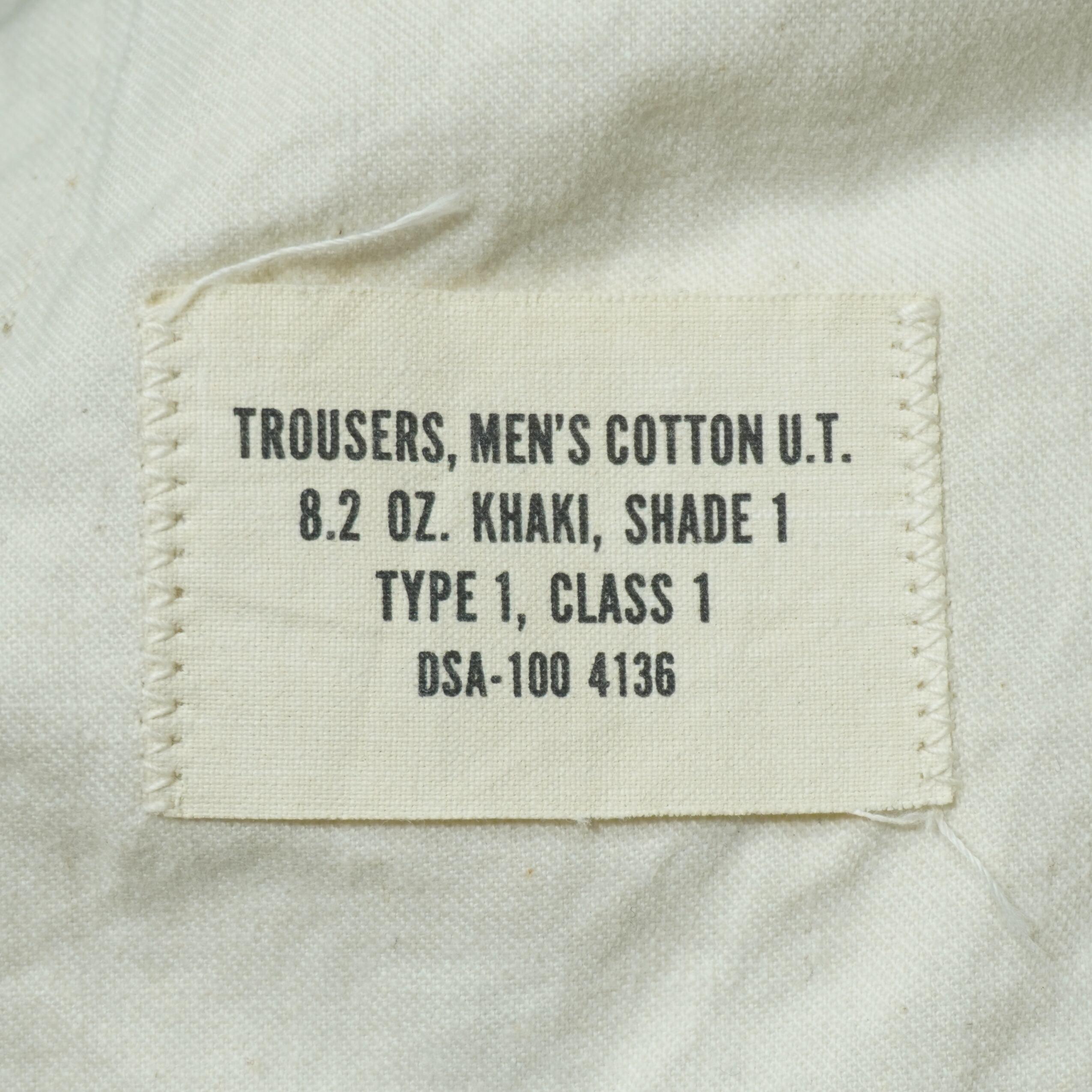 TROUSERS, MEN'S COTTON U.T. 8.2OZ KHAKI, SHADE 1 TYPE 1 CLASS 1