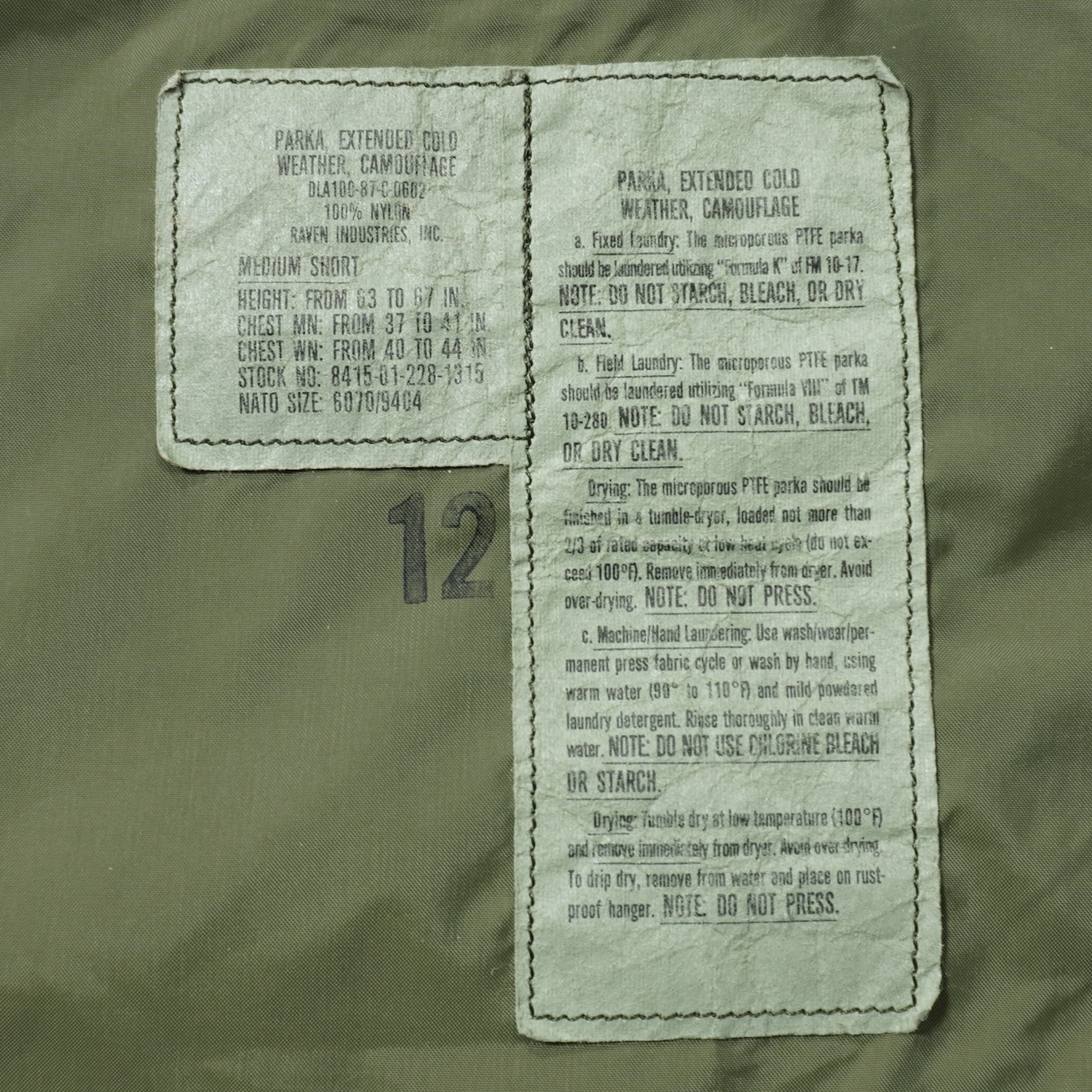 US ARMY ECWCS GEN1 PARKA 1987s MEDIUM SHORT JA25073