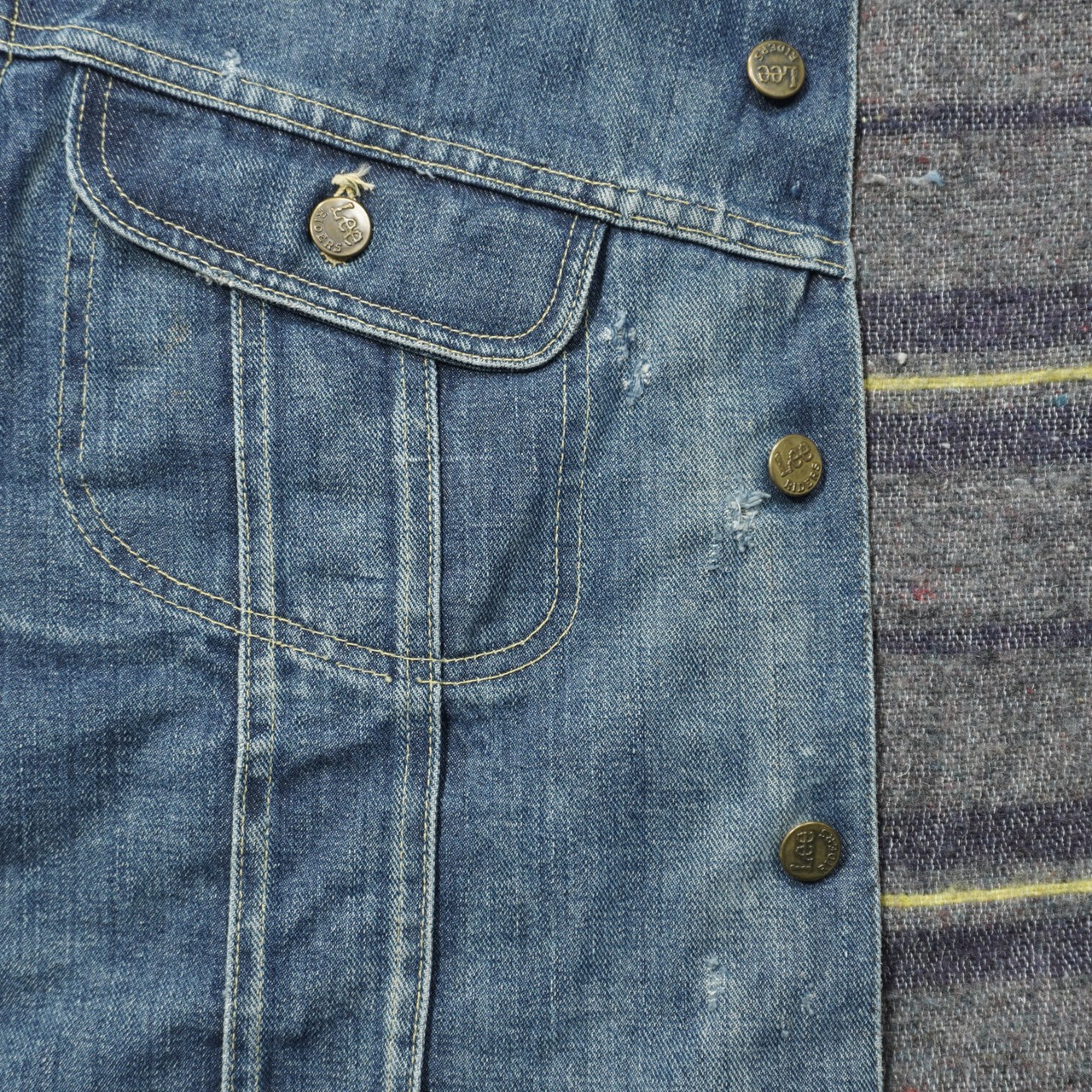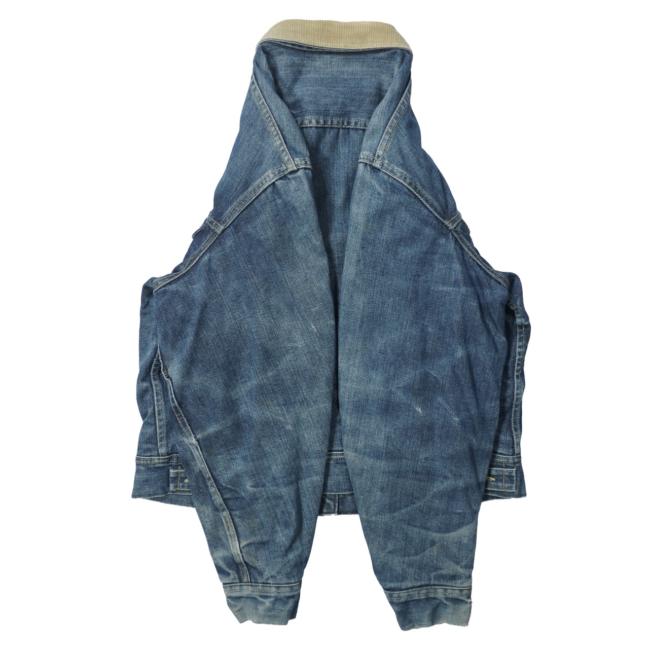 薄汚れ、前身頃に擦れ、袖や袖先に擦れ、ボタンホールほつれ、ステッチほつれがあります。