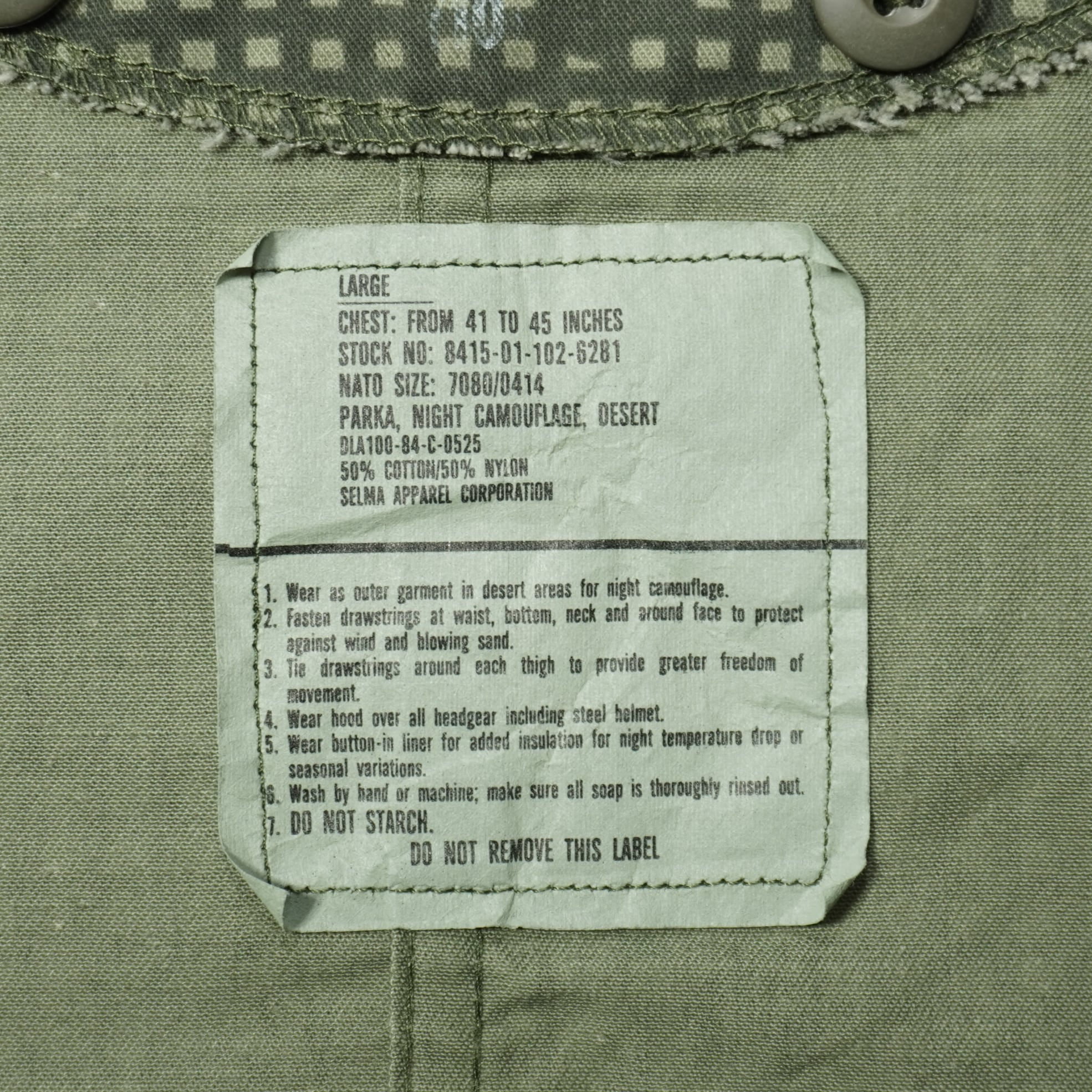 US ARMY DESERT NIGHT CAMOUFLAGE PARKA 1980s JA25153