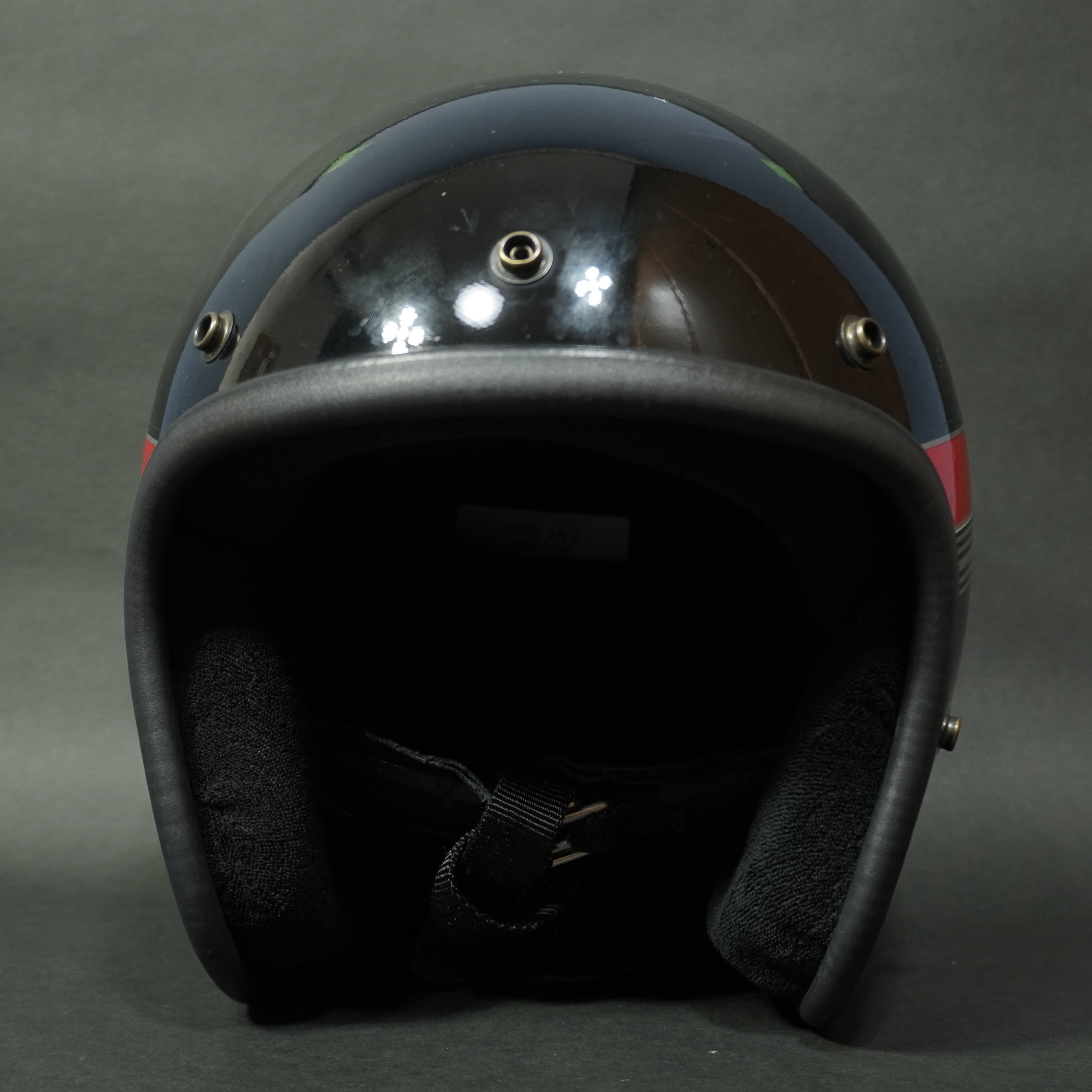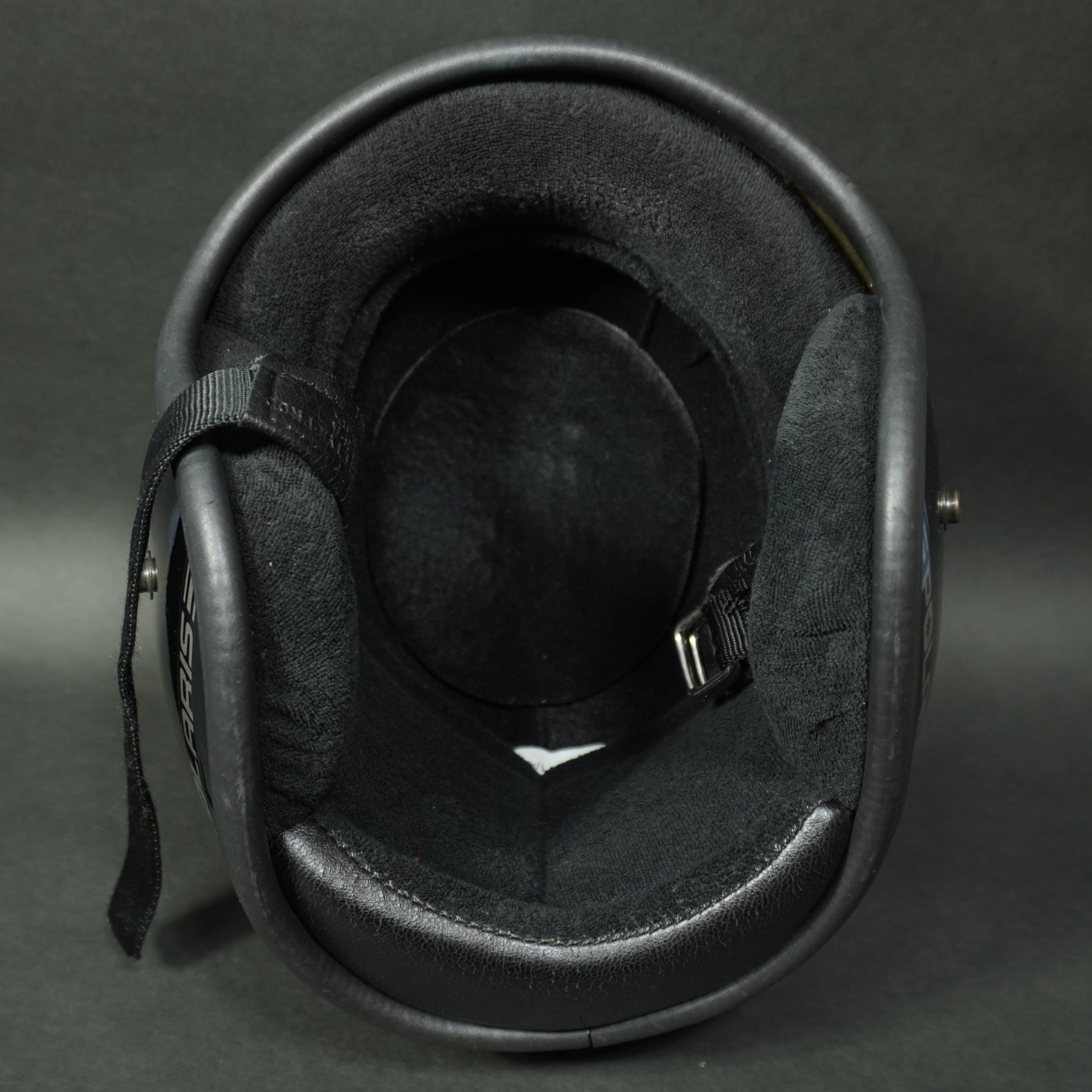 ストラップ部分に8 85の文字が刻印されているので1985年8月製造か検査が通ったものになるので1980年代のヴィンテージヘルメットです。