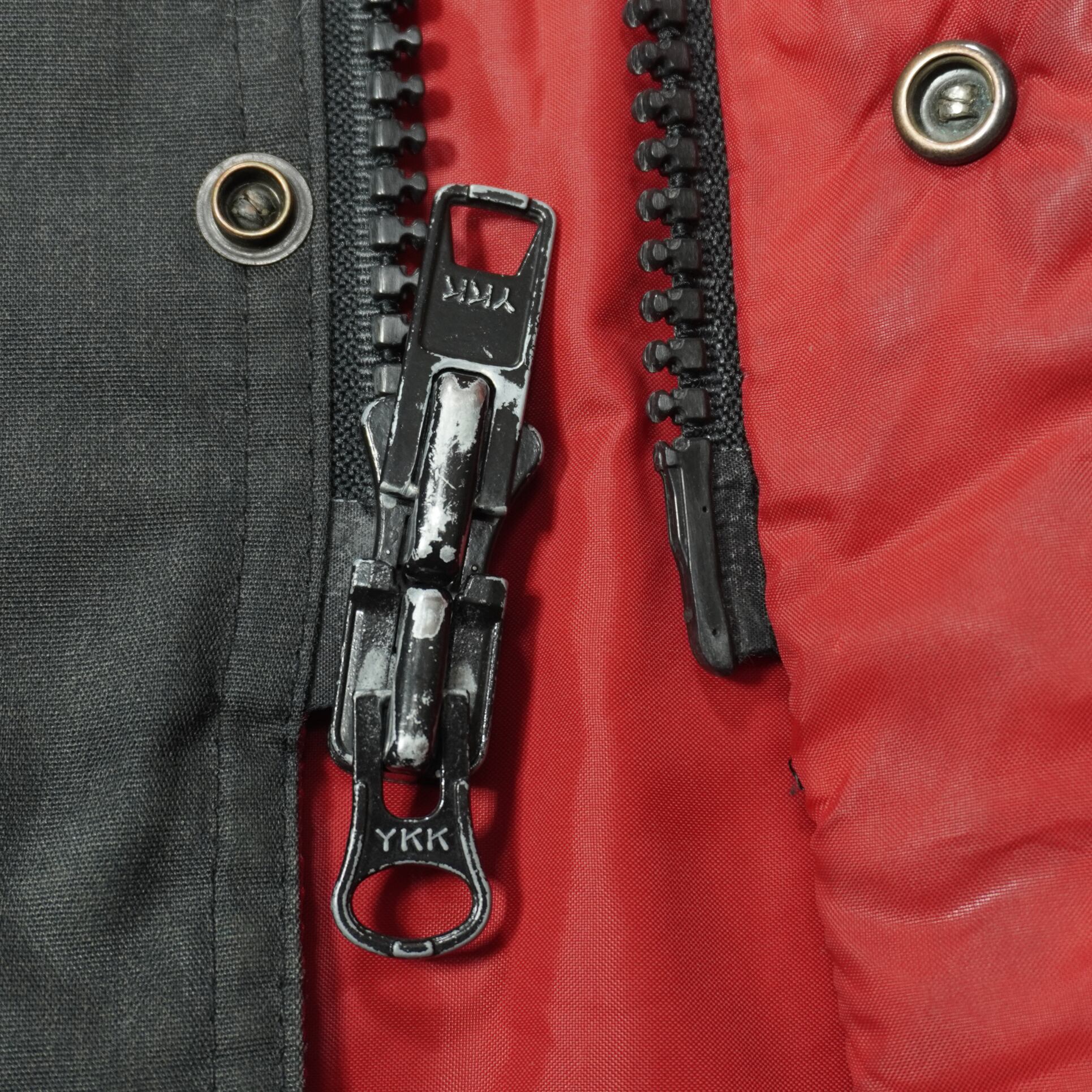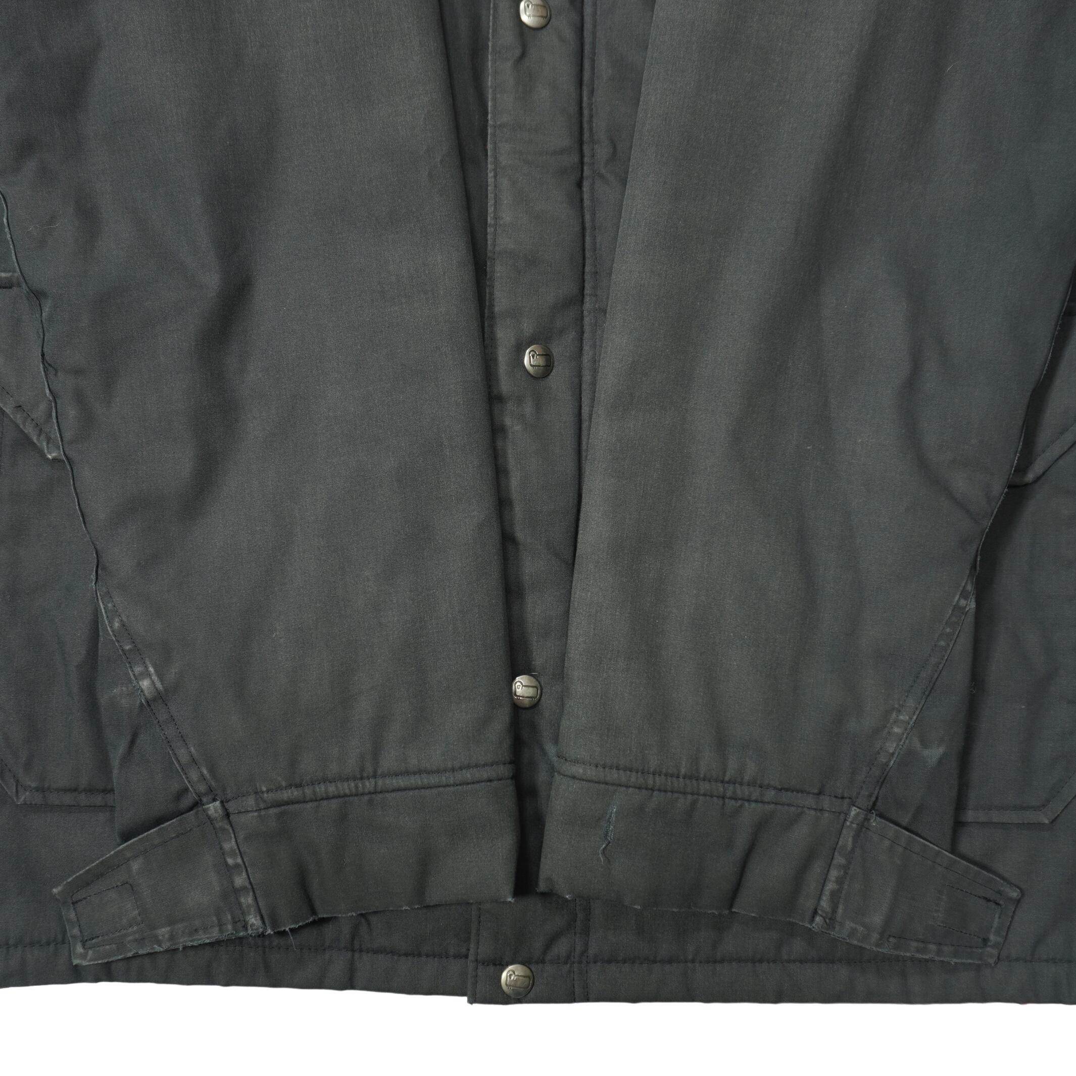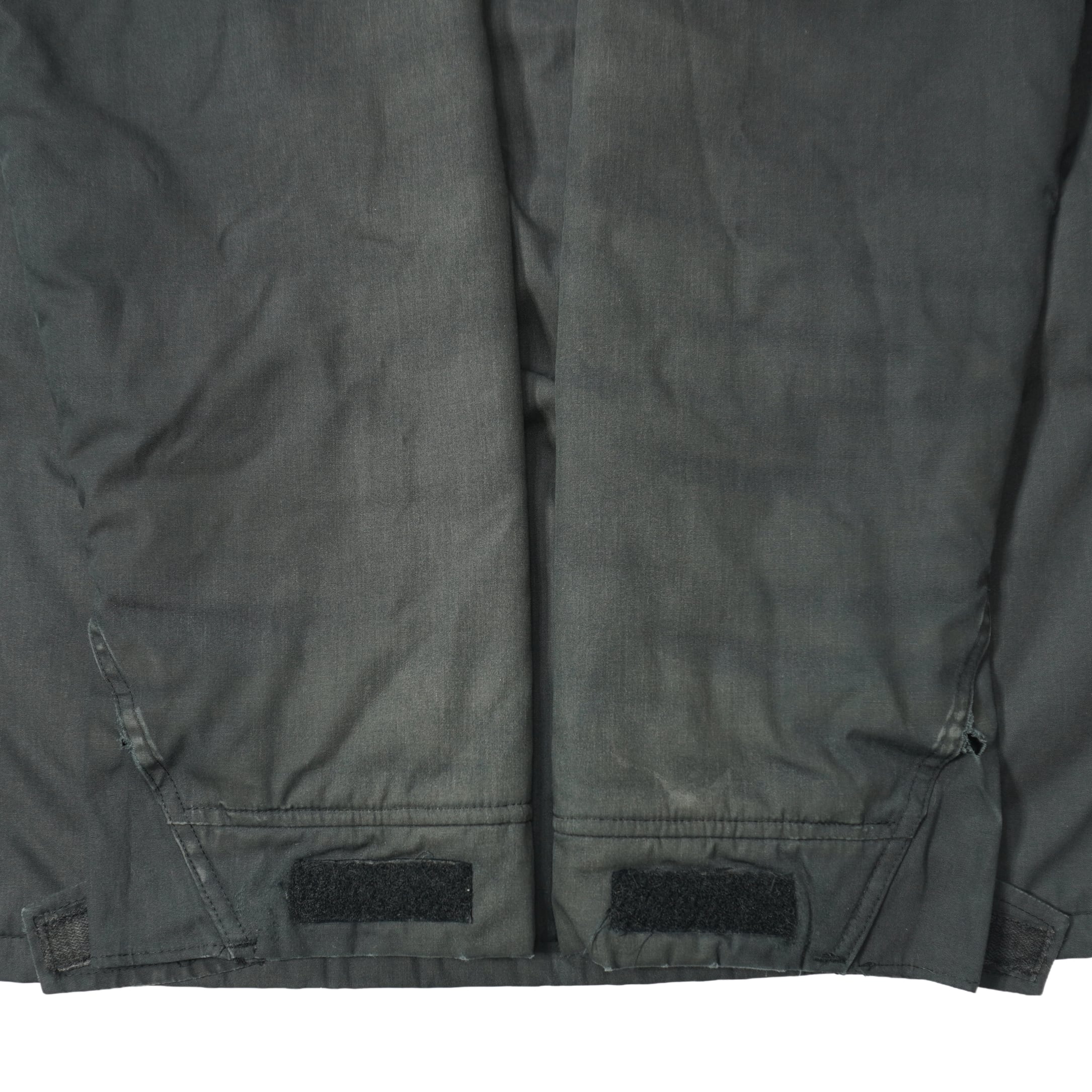 前身頃と裾と袖下と袖先とカフスに擦れ破れがあります。