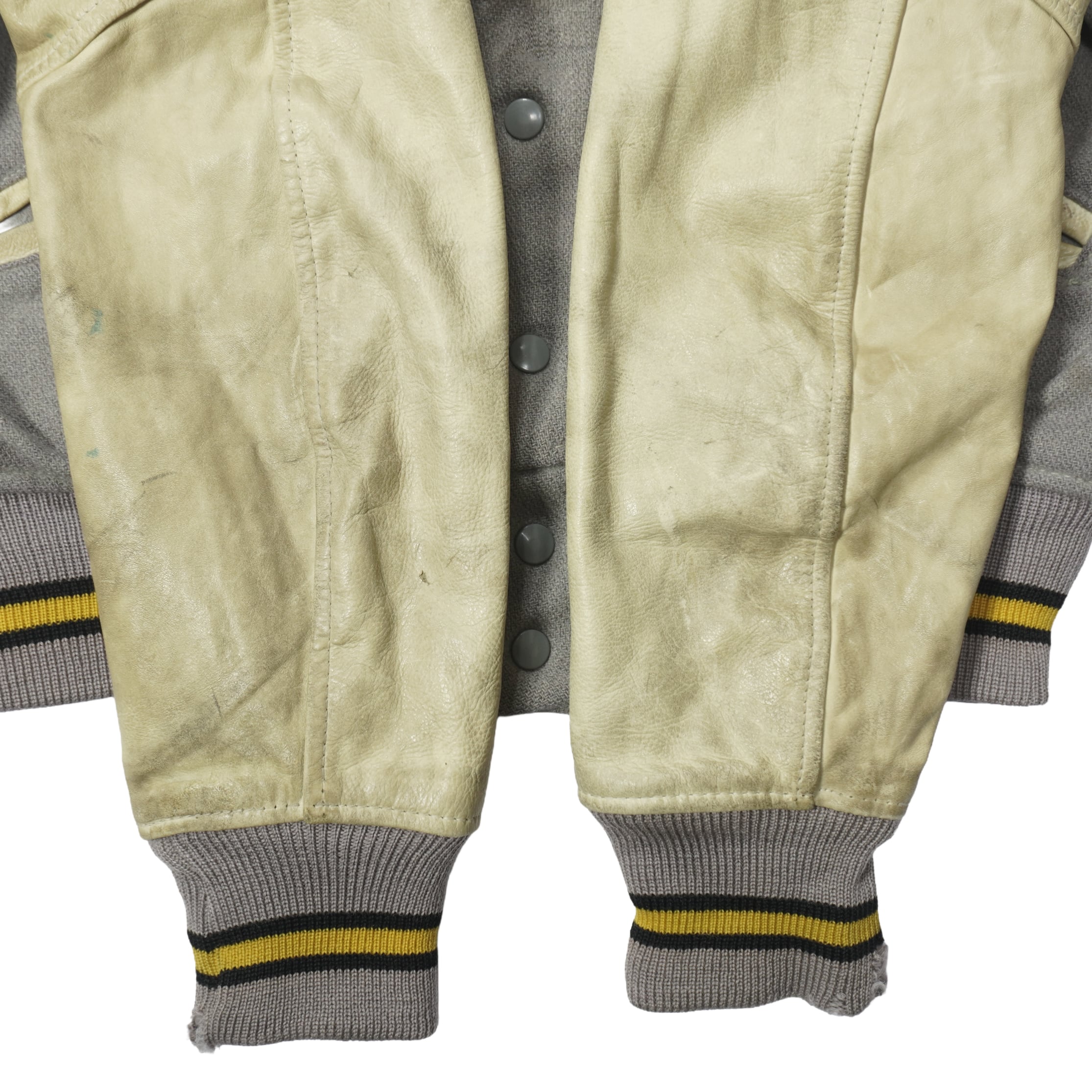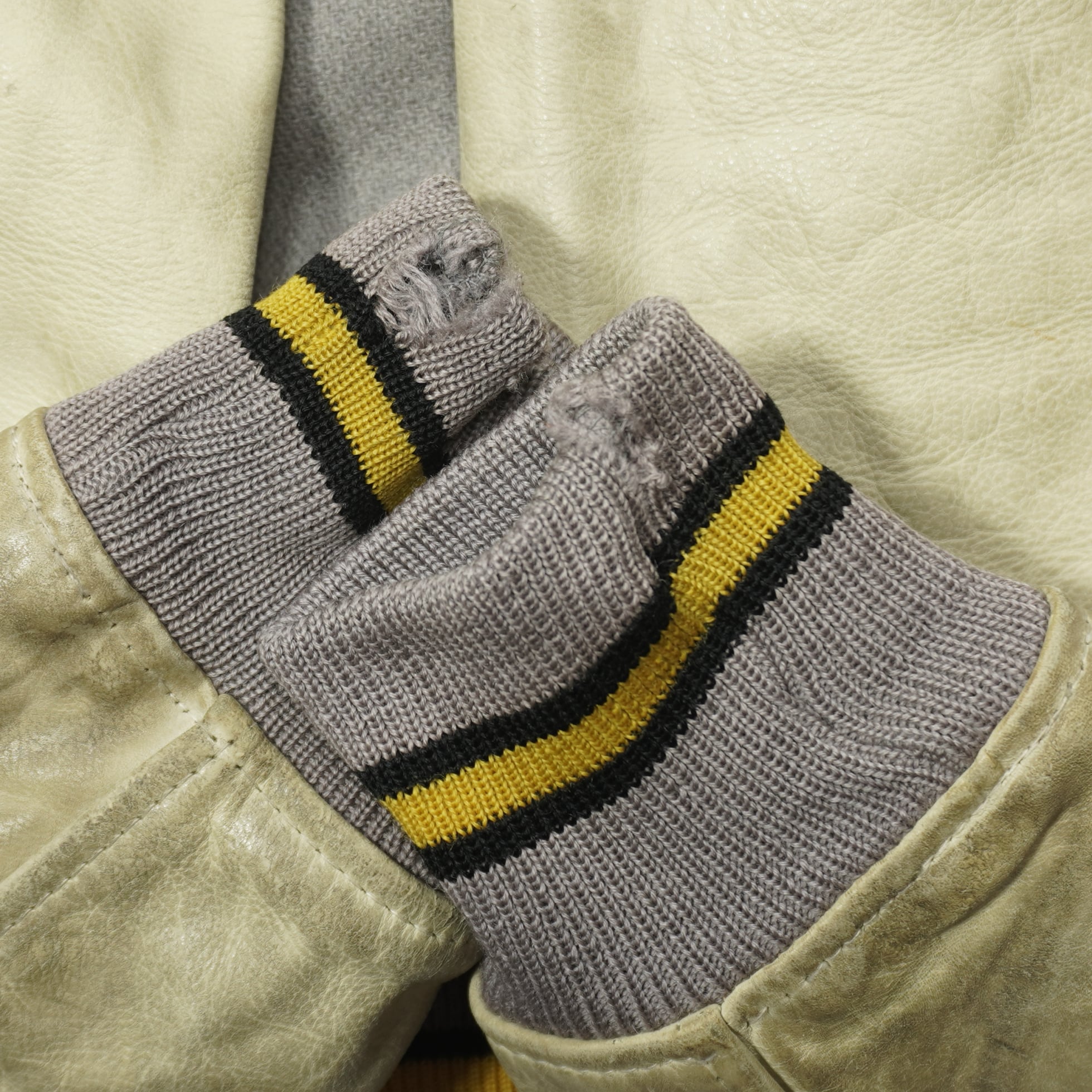 袖部分は生成色のレザーです。