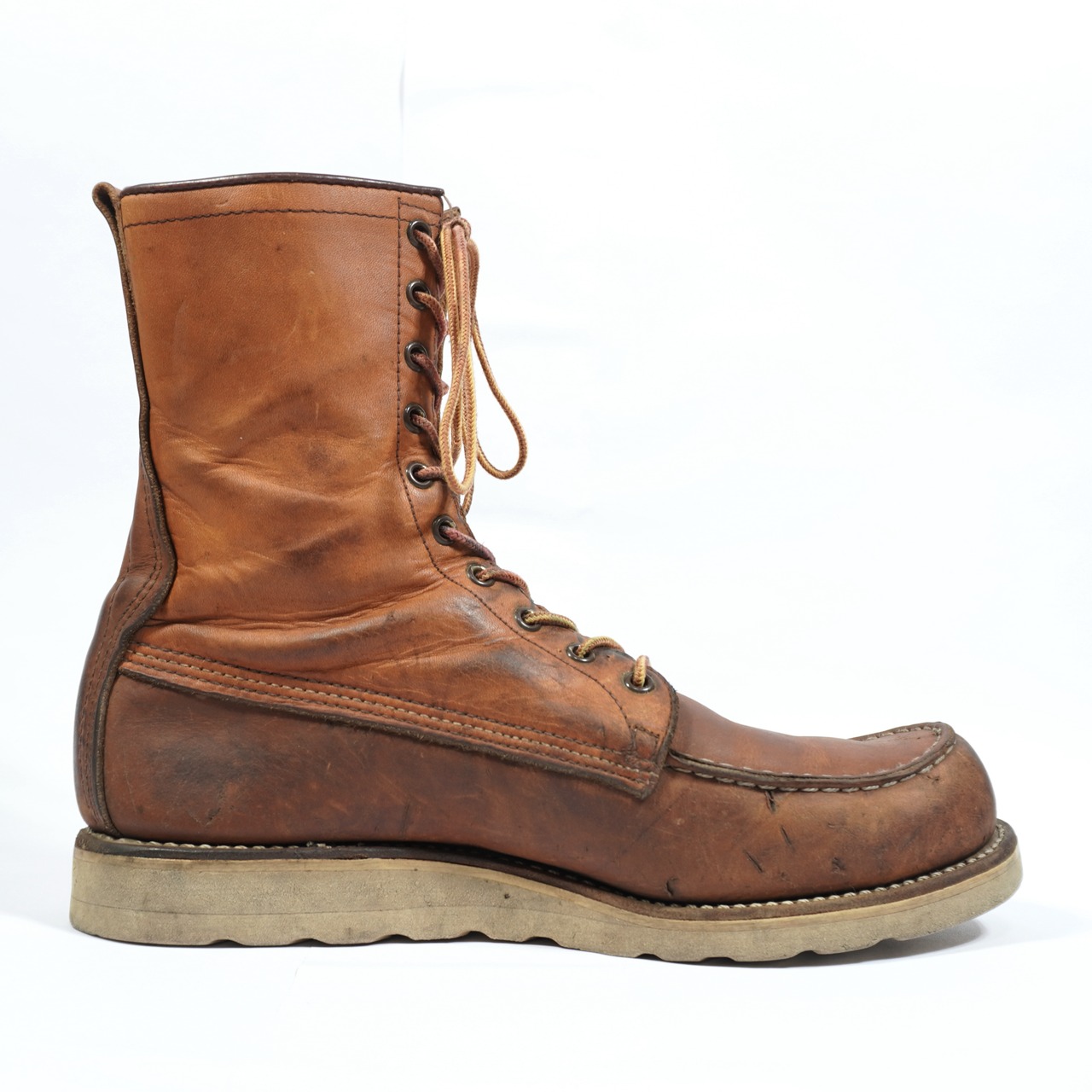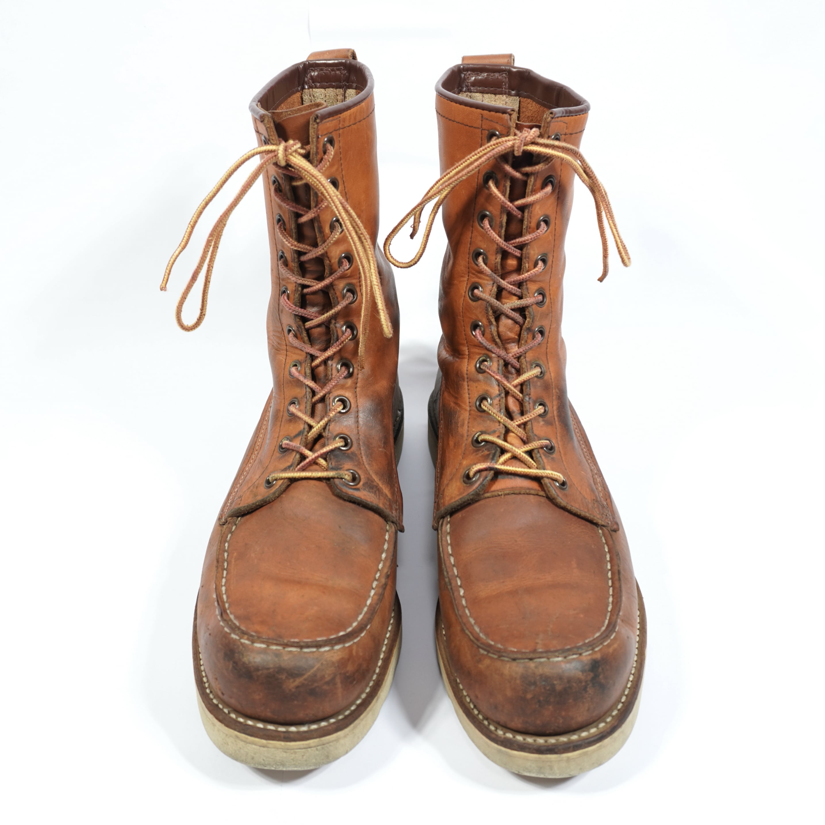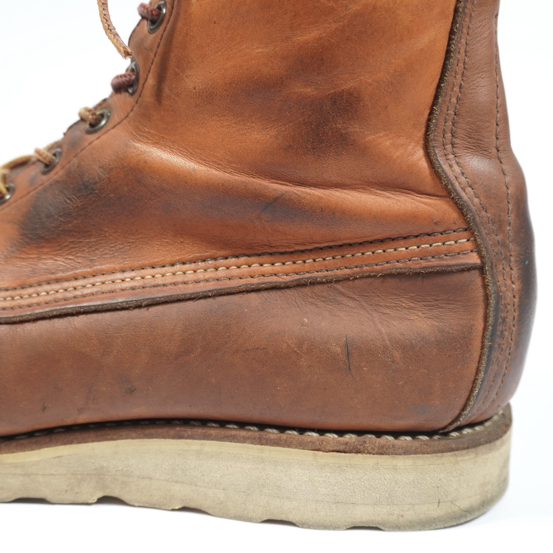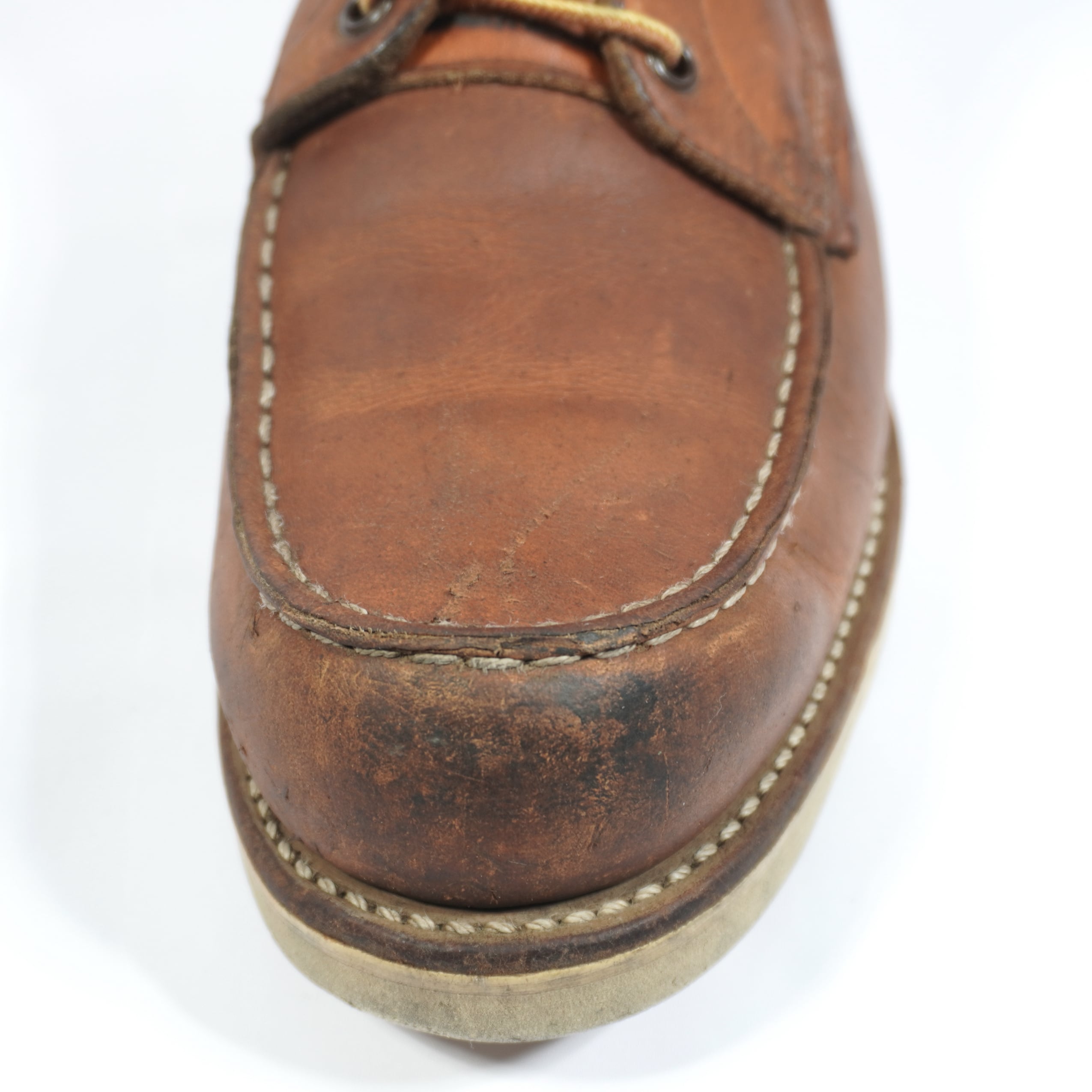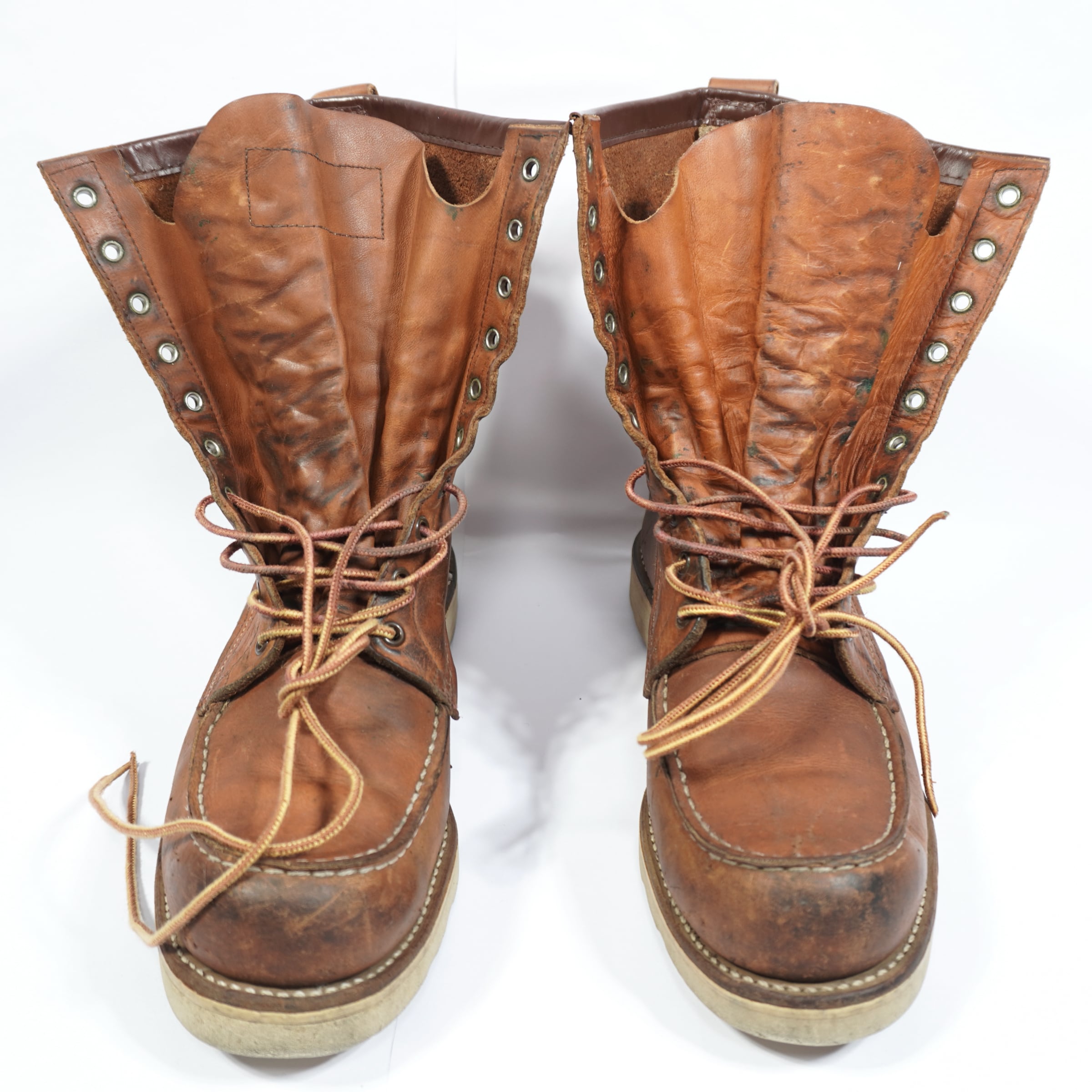 履き込まれていて、擦れやキズや汚れ、ハトメに青錆、ソールに減りがあります。