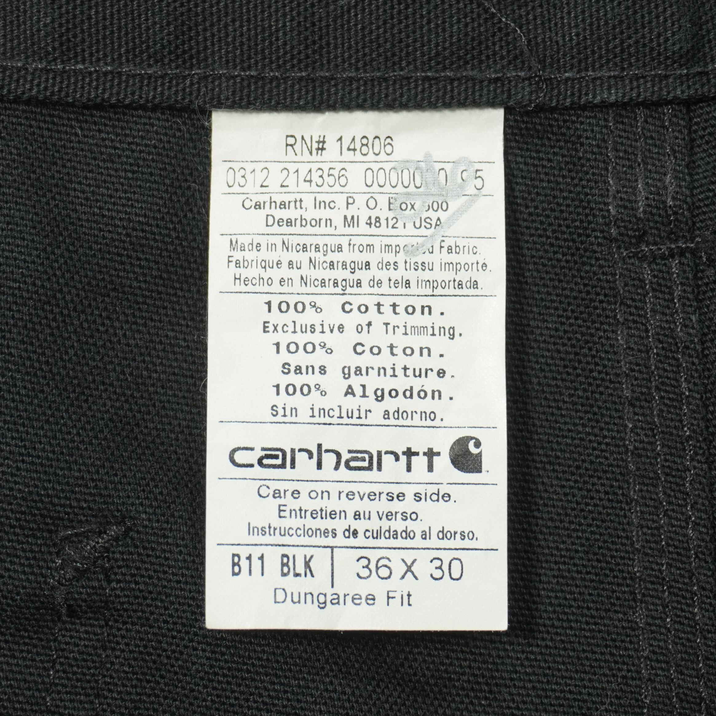Carhartt SINGLE FRONT PANT BLK W36 L30 BR25048