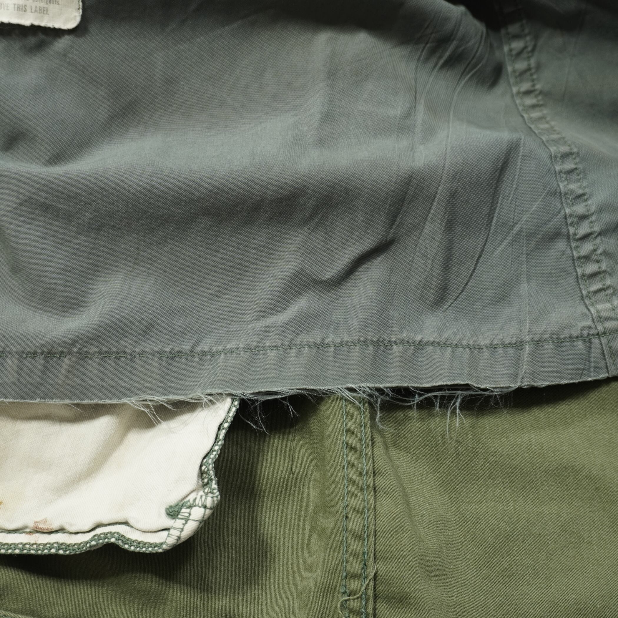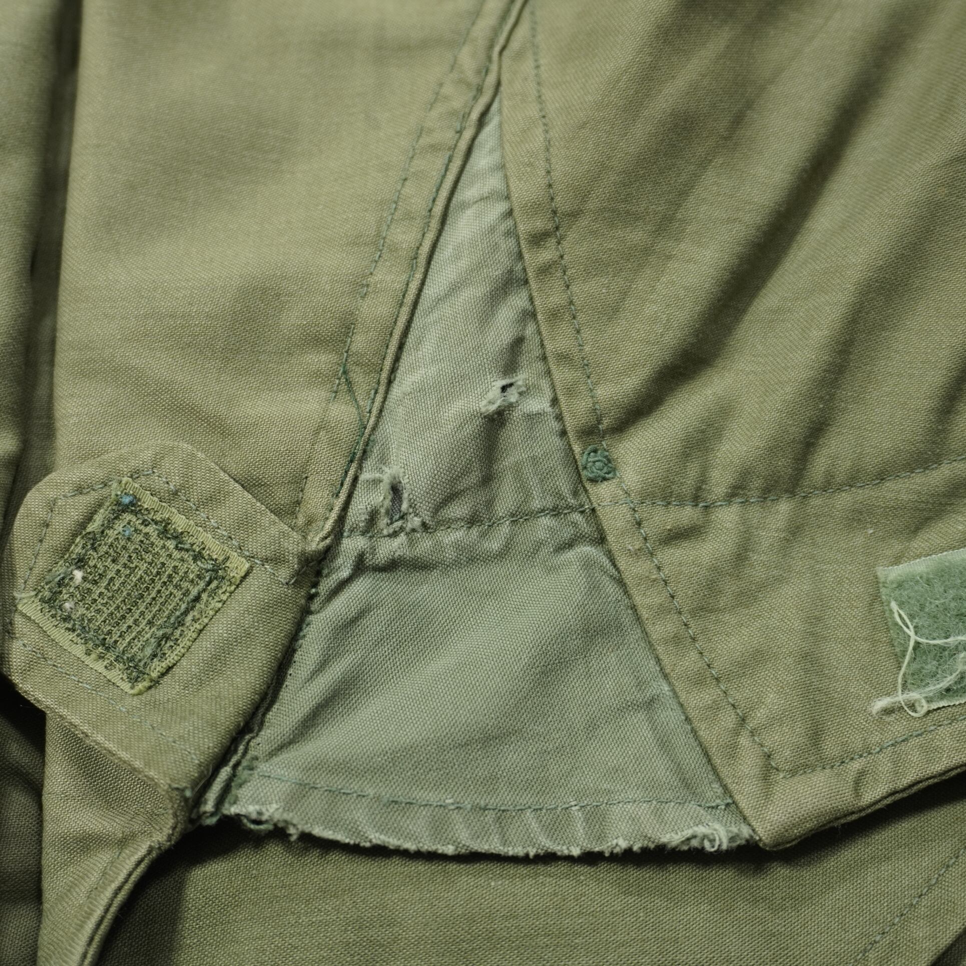 薄汚れ、右袖にペンキ汚れ、袖のマチ部分に破れ、ライナーに擦れ破れがあります。