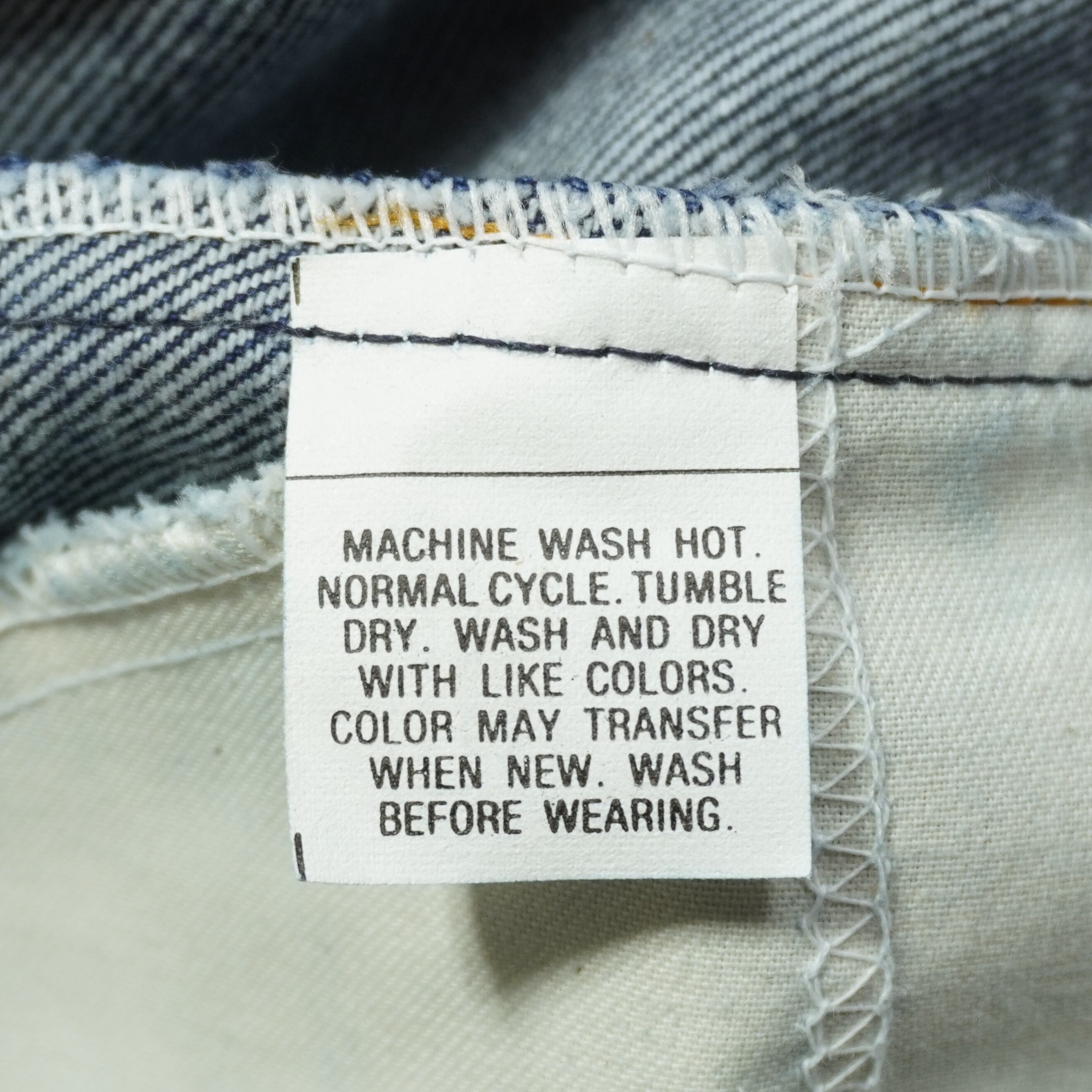 数回洗濯した程度の濃紺の色残りで目立つダメージはありません。