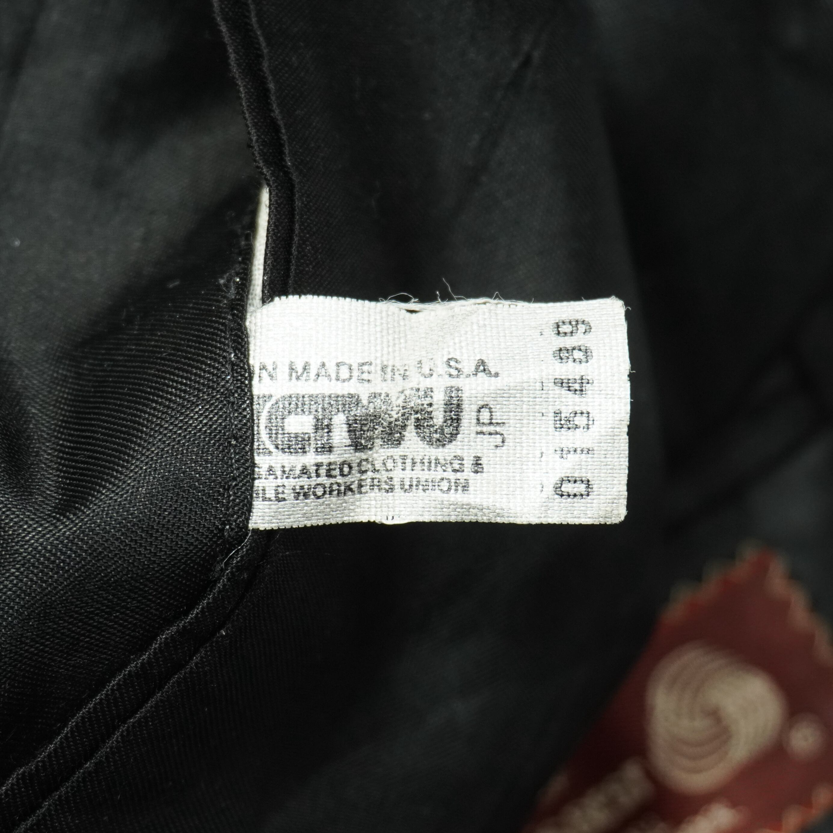 ACTWU(AMALGAMATED CLOTHING & TEXTILE WORKERS UNION)のユニオンメイドのタグが内ポケットに付きます。