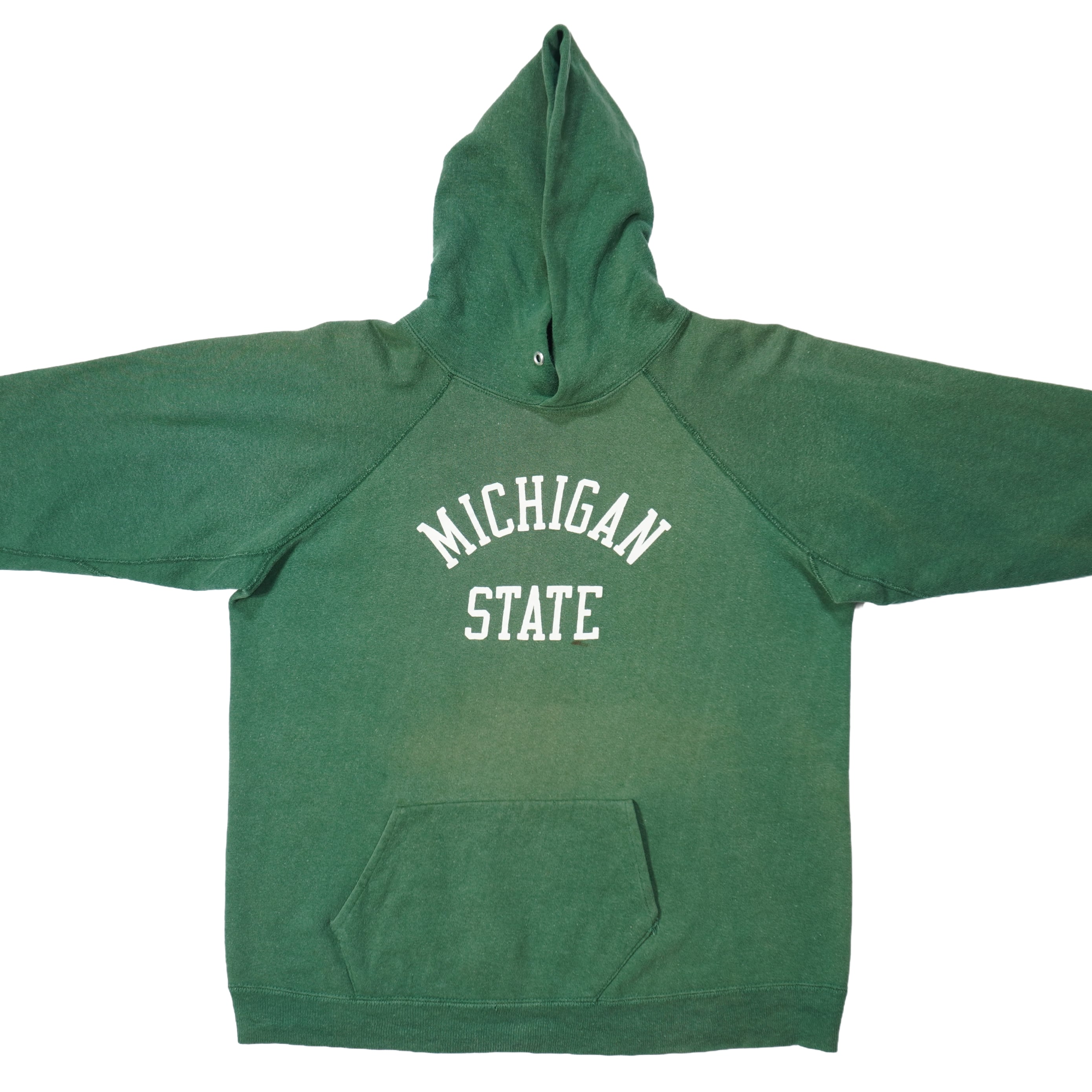 色落ちフェード、薄汚れ、左肩に擦れ、左袖に擦れ破れ、裾リブに擦れがあります。