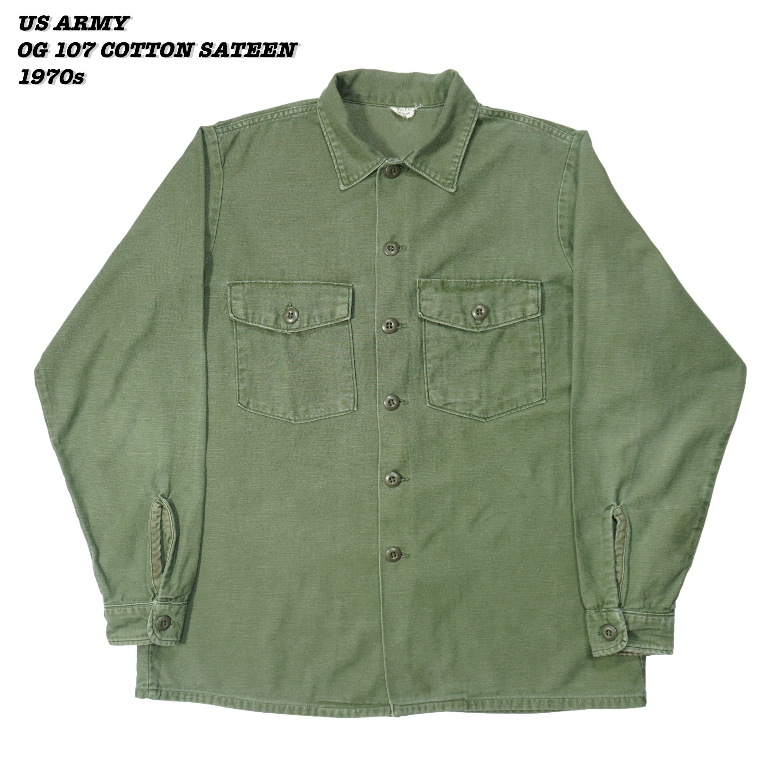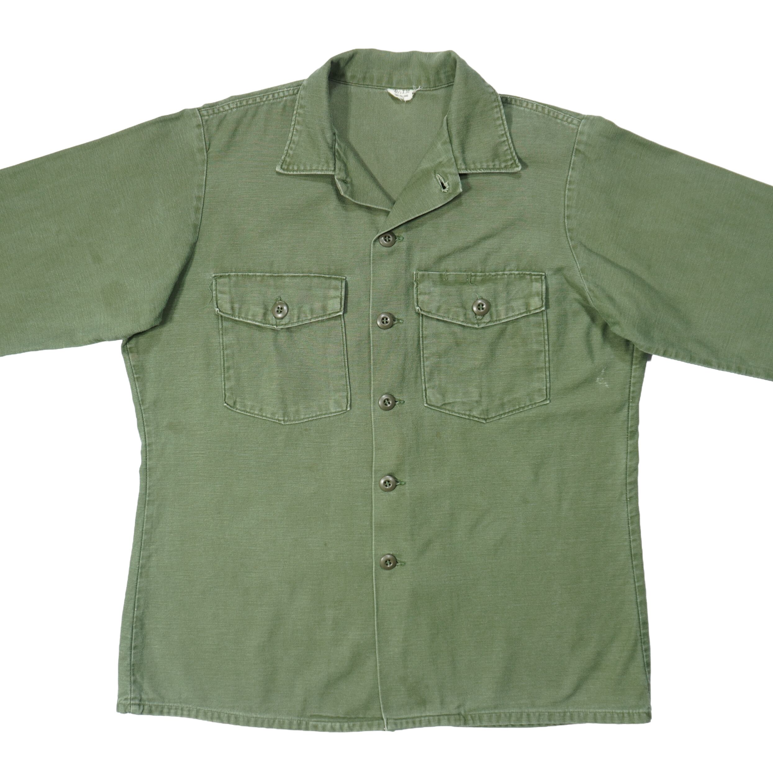 US ARMY OG107 COTTON SATEEN UTILITY SHIRT 1970s 16 1/2-36 SH25076