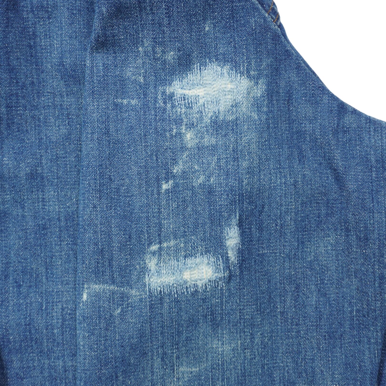 襟に擦れ、前たてのボタンホールにほつれ、右肩と右袖にリペア、薄汚れがあります。