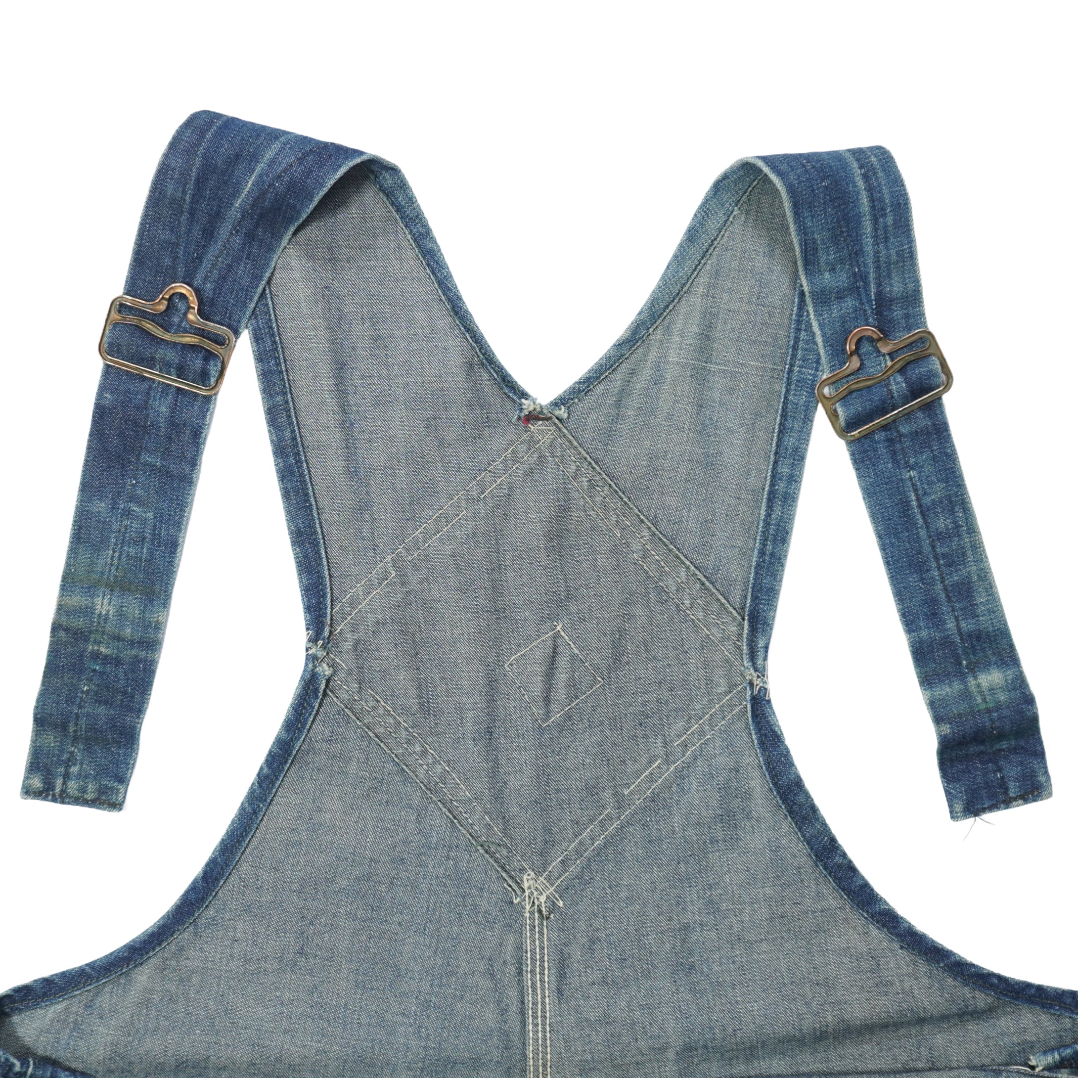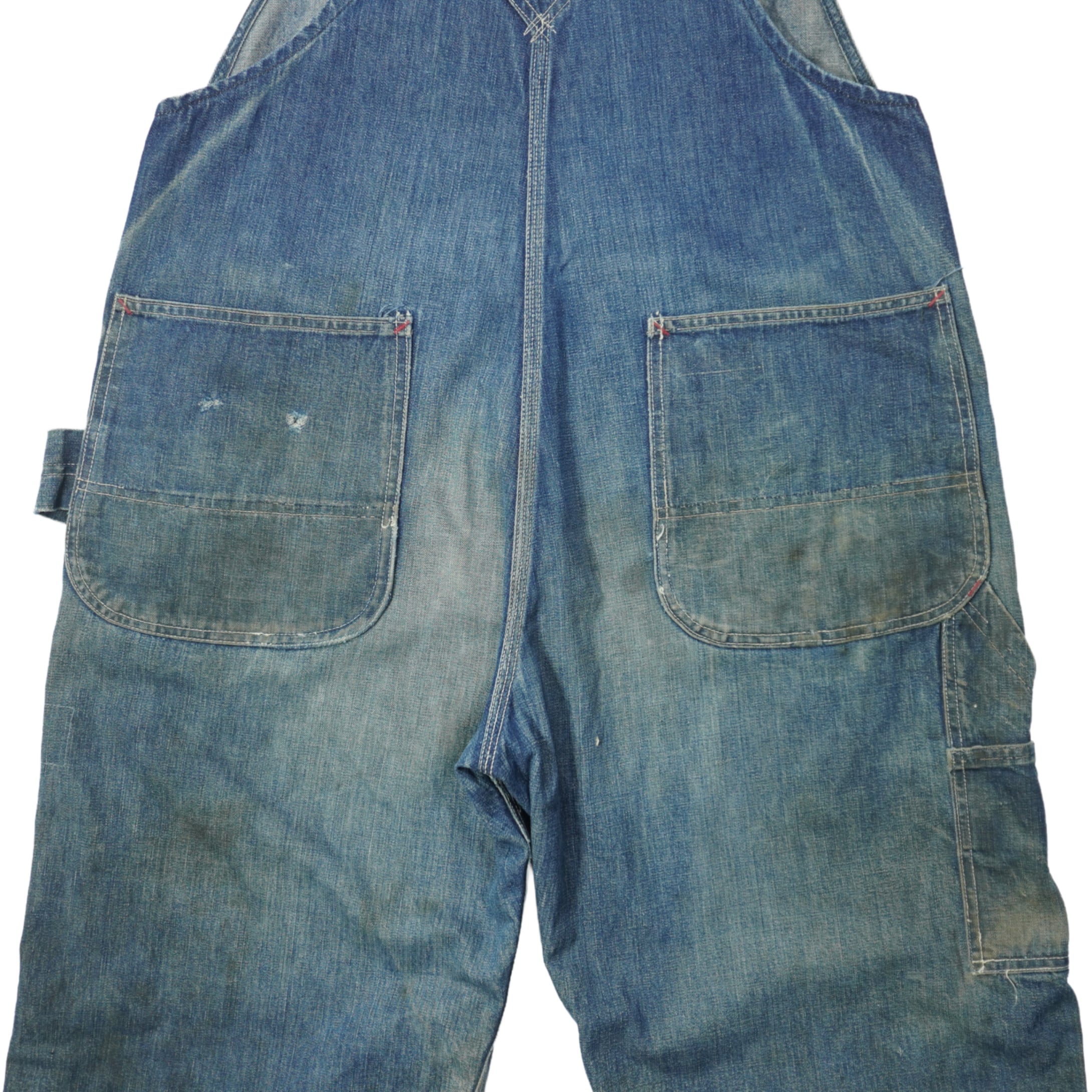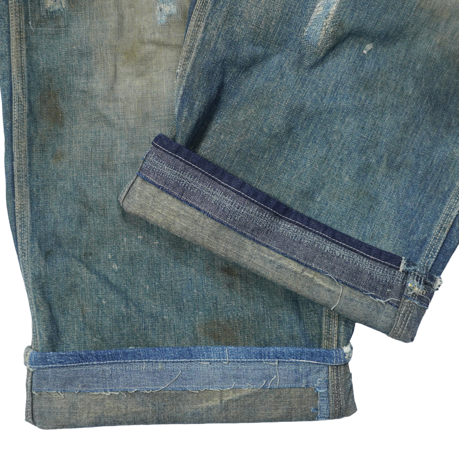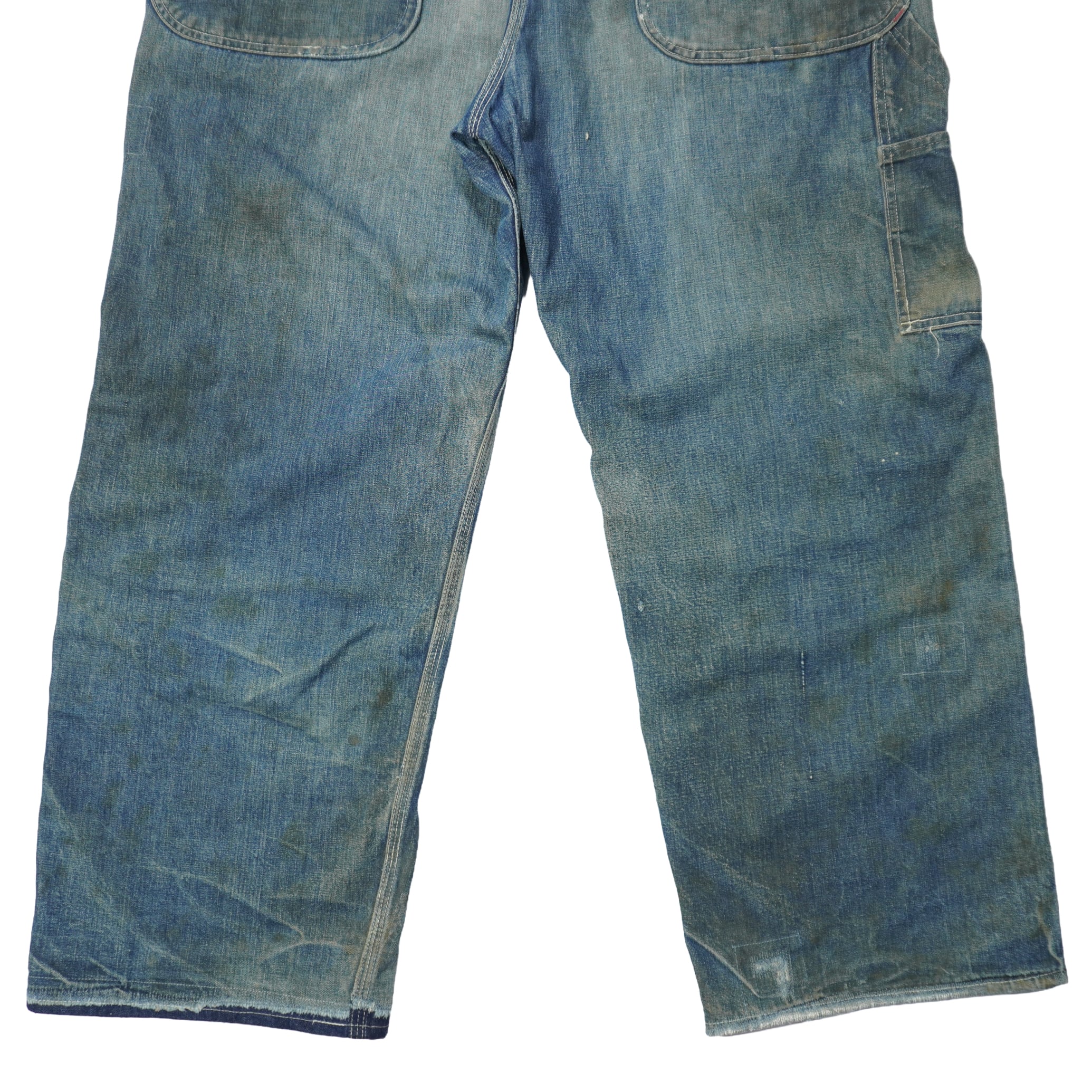 インディゴの縦落ちや色落ちも良くリアルなワークウェアとして使われていたものを着用できる状態までリペアしてあります。