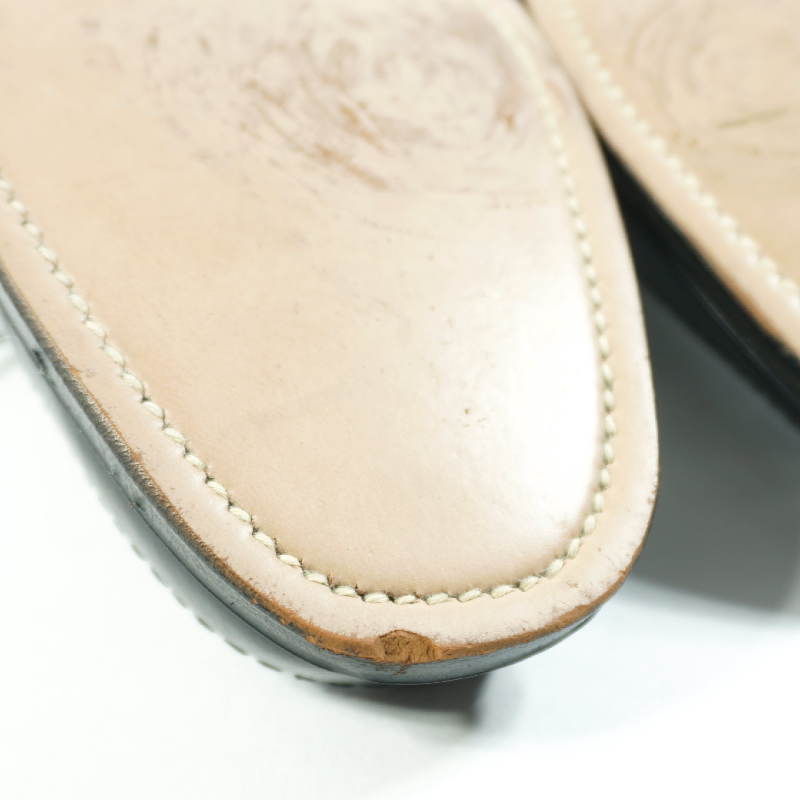 右のつま先ソールに欠けや僅かな擦れがありますがほとんど履かれた形跡はなく試着程度の状態です。