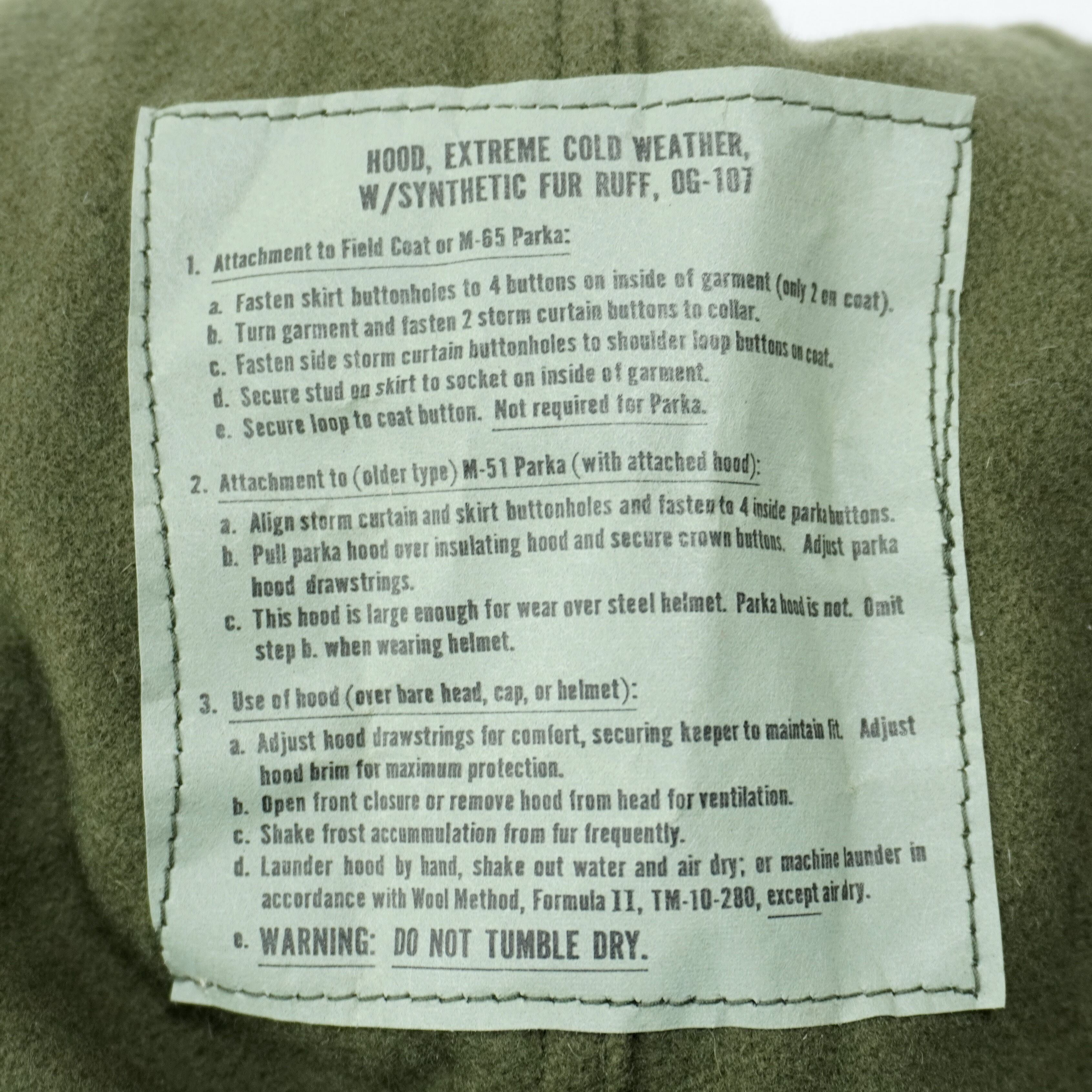 HOOD, EXTEREME COLD WEATHER, W/SYNTHETIC FUR RUFF OG-107