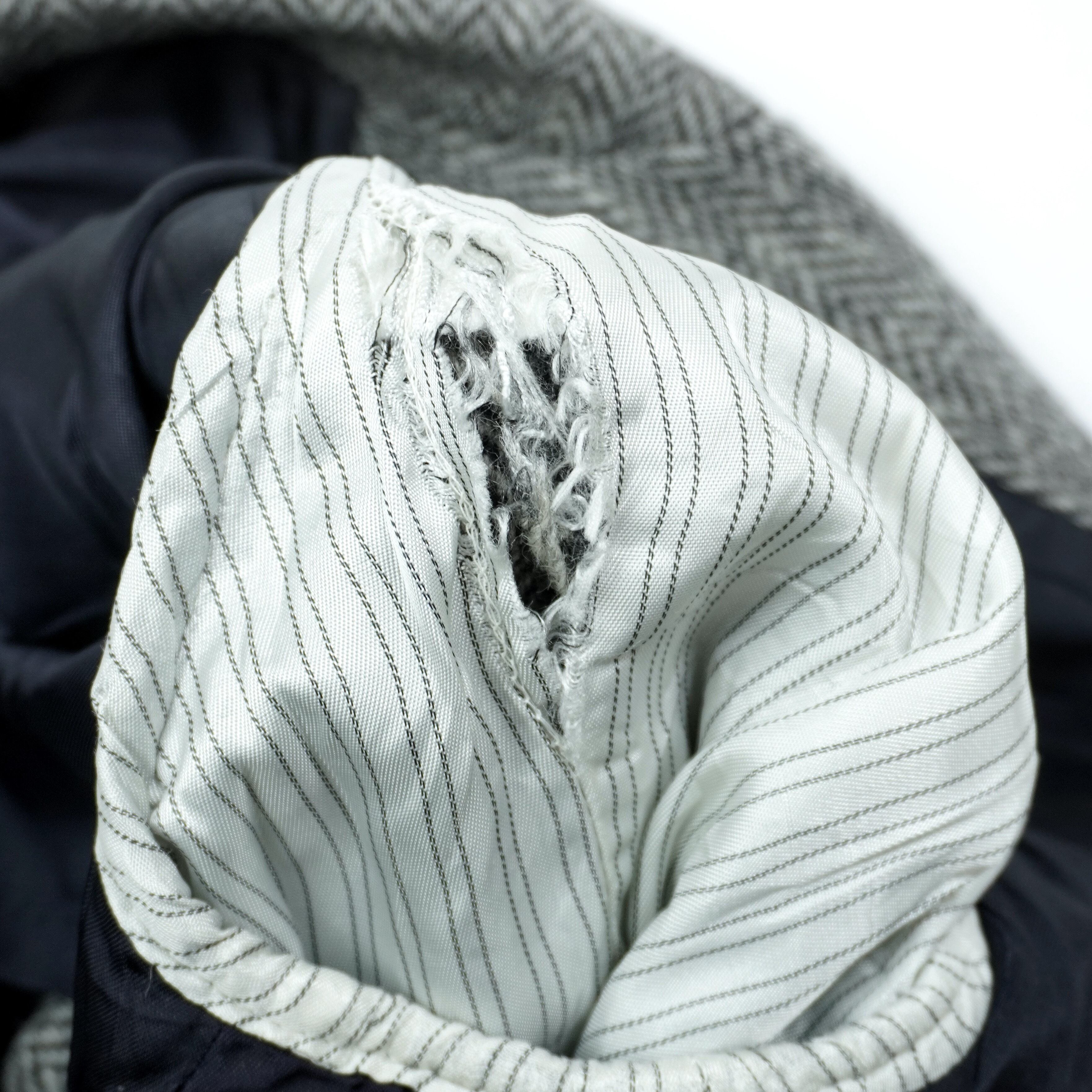 左袖の裏地にほつれ破れがあります。