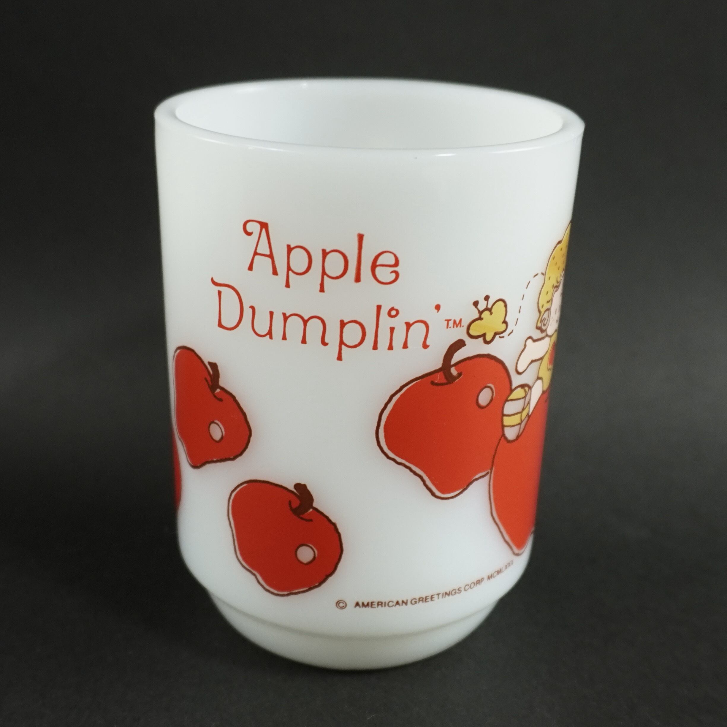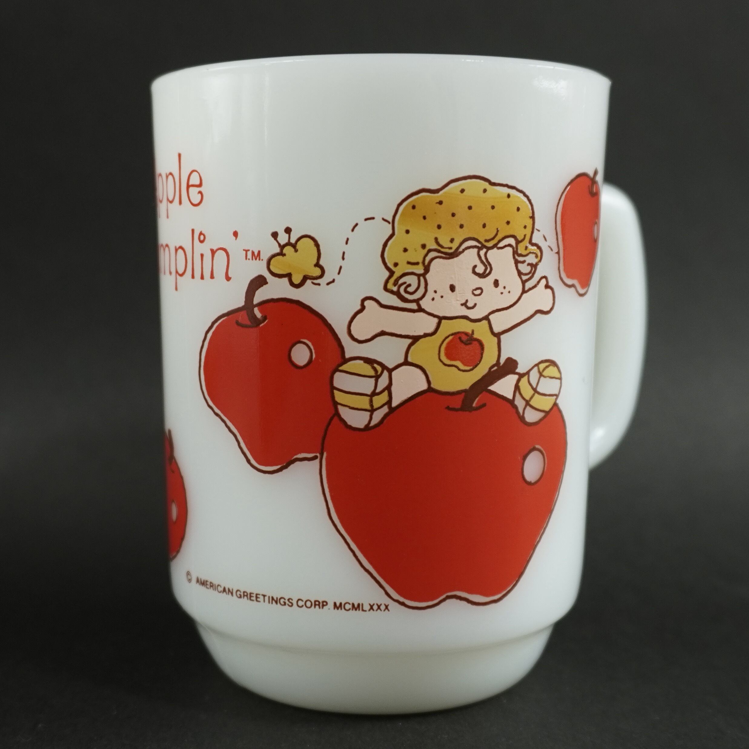 アメリカングリーティング社が1980年代に発表したキャラクターのストロベリーショートケーキの妹のアップルダンプリンのマグカップです。
