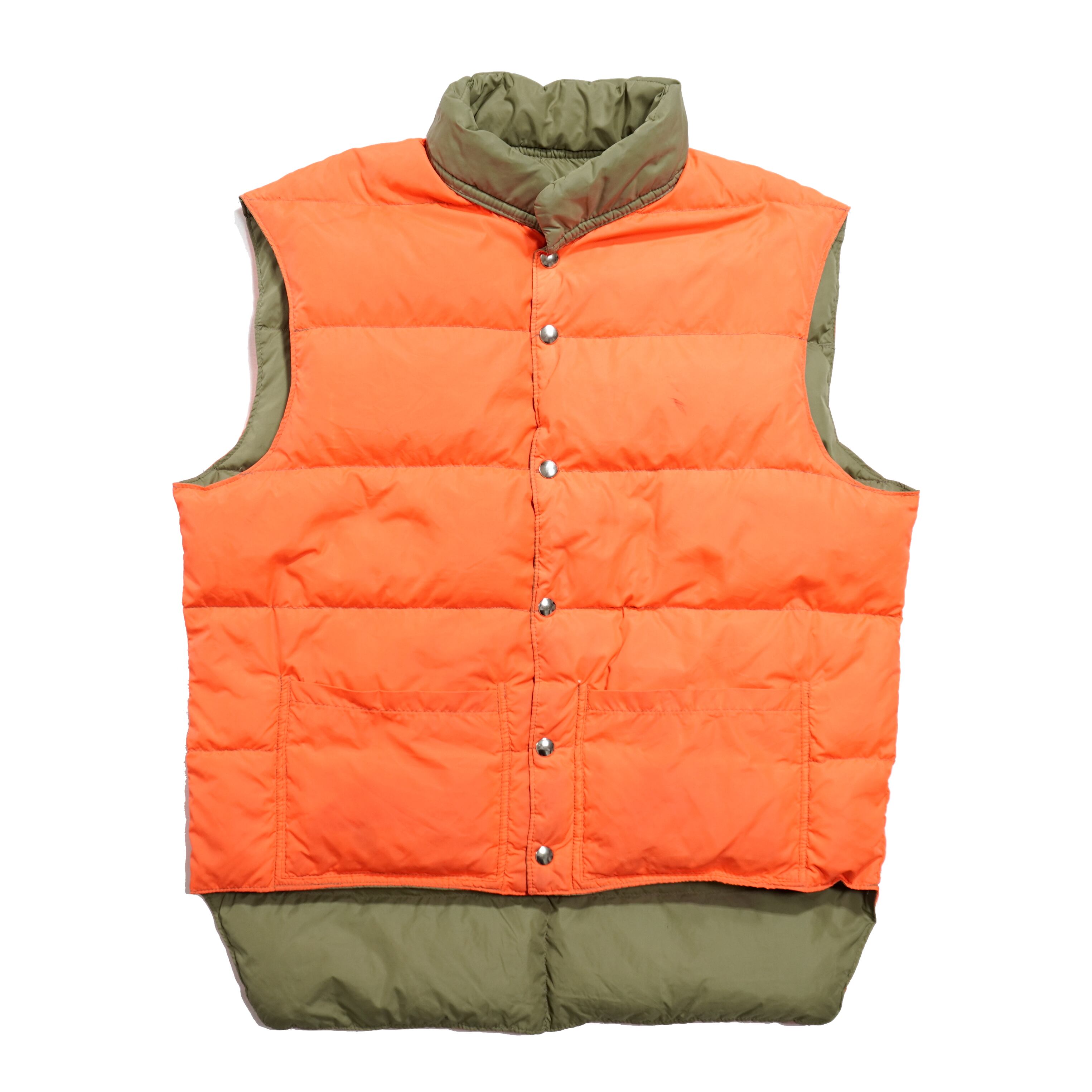 ハンティングなどに使用していたリバーシブルダウンジャケットで裏地側のオレンジは発色の良いオレンジ色です。