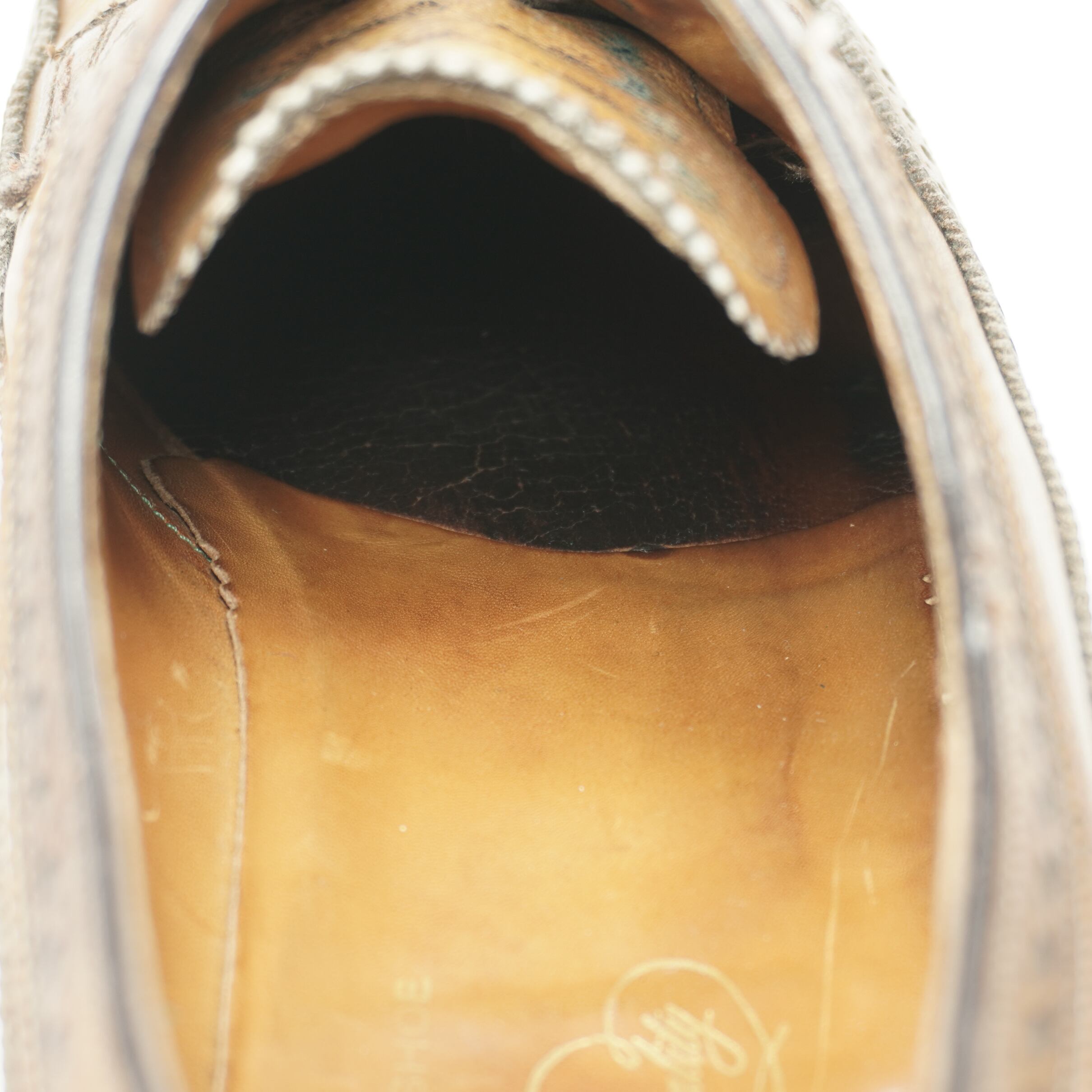 つま先に僅かな小傷、履き口に擦れがあります。