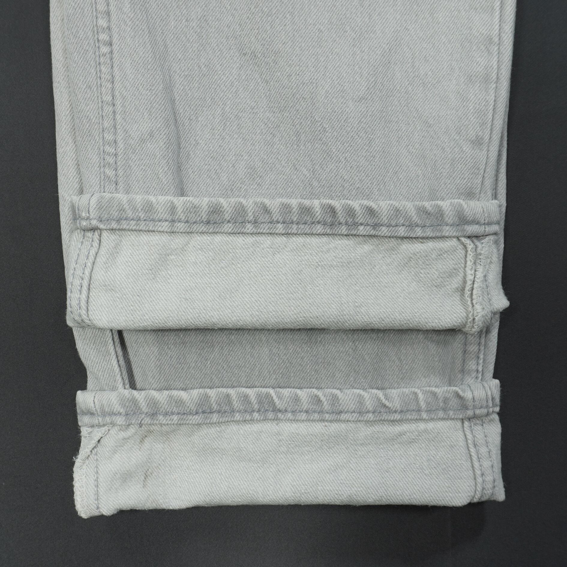 左ヒップに汚れ、右後ろ裾に薄汚れ、股下に擦れとステッチほつれ、裾に擦れがあります。
